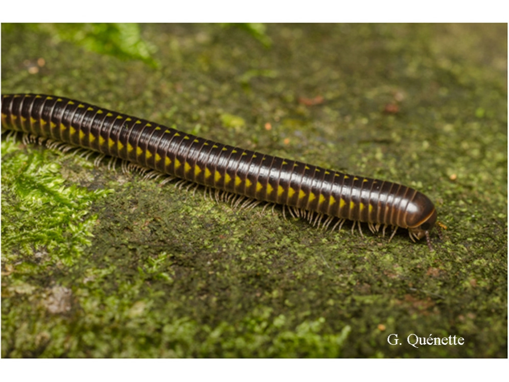 Ce myriapode, appartient à la famille des Rhinocricidae. Son corps, mesurant de 3 à 5 cm, est généralement noir avec des taches jaunes variables selon les individus. A la saison des pluies, lorsque que les conditions lui sont favorables, il peut être très abondant dans les forêts sèches de la Presqu'île du sud-ouest de la Martinique. Cette espèce est présente partout en Martinique, du niveau de la mer jusqu’à 500 m d’altitude. Elle est endémique des Petites Antilles et présente uniquement en Guadeloupe, Dominique et Martinique.